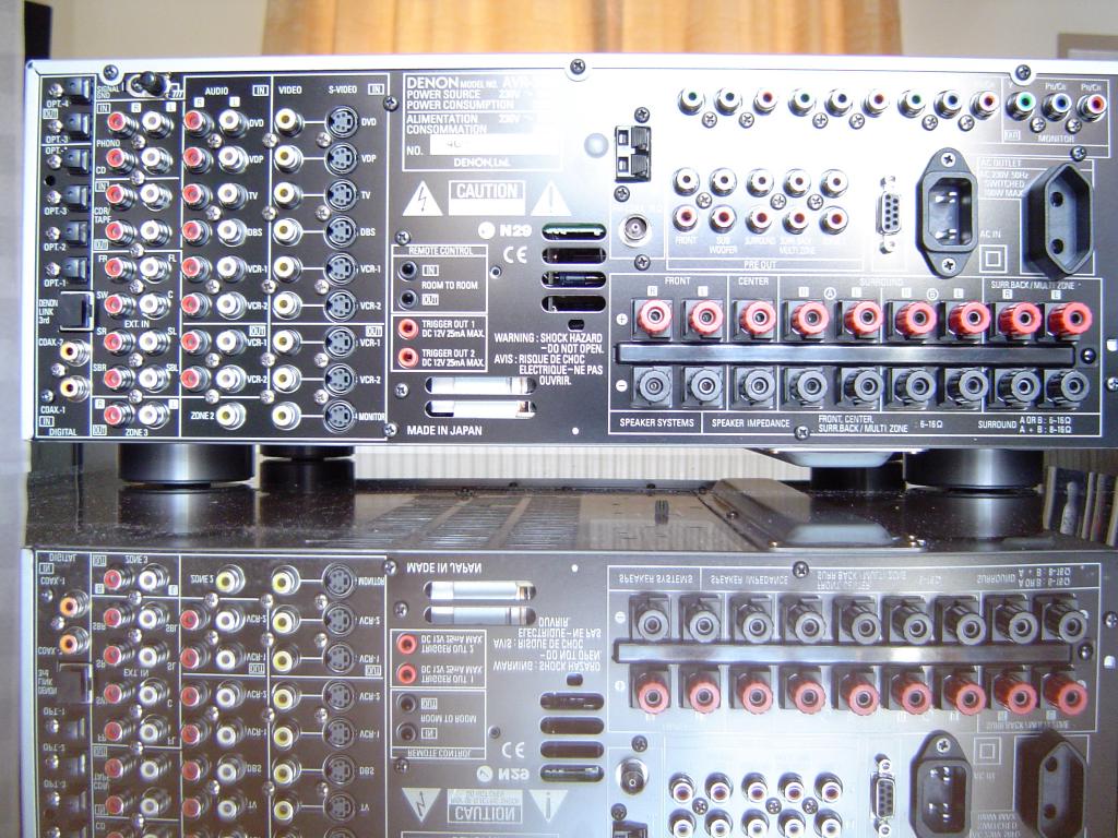 (FR, FL, C, SW, SR et SL) pour la partie SACD; la XBox sur OPT-1; le tourne-disque qui crachote sur PHONO IN