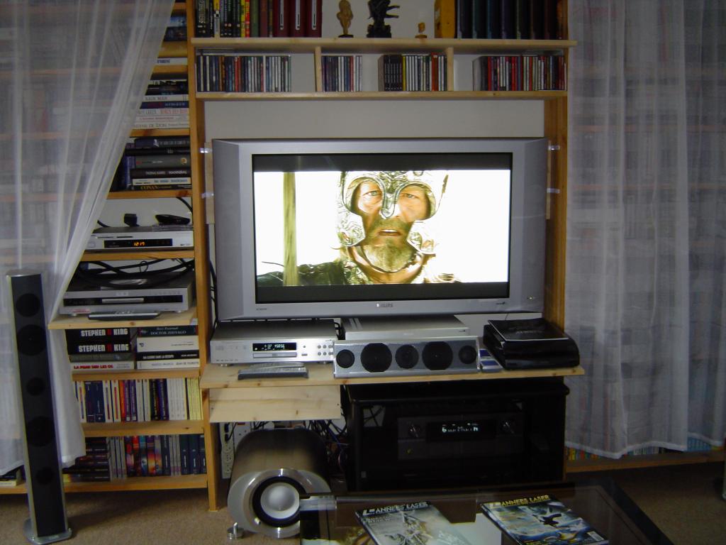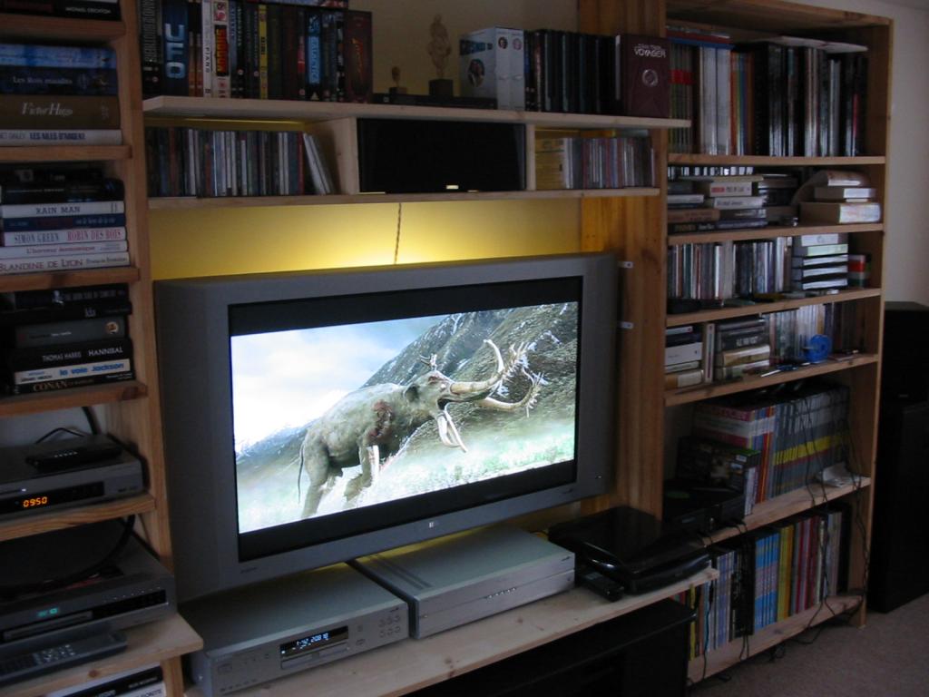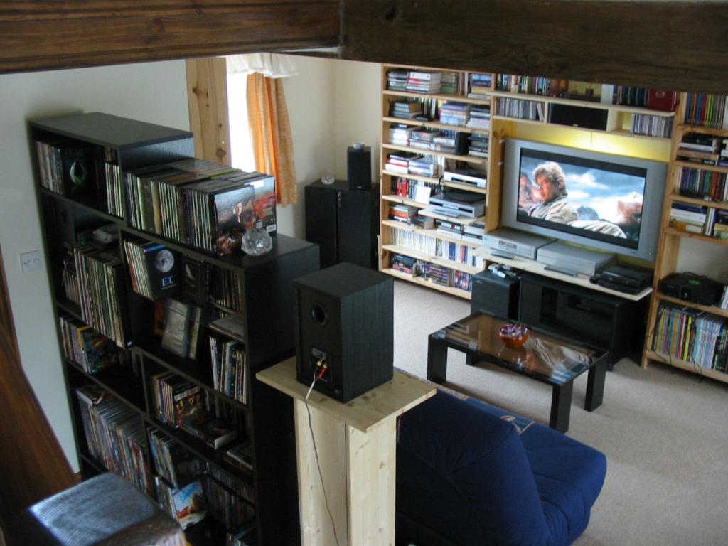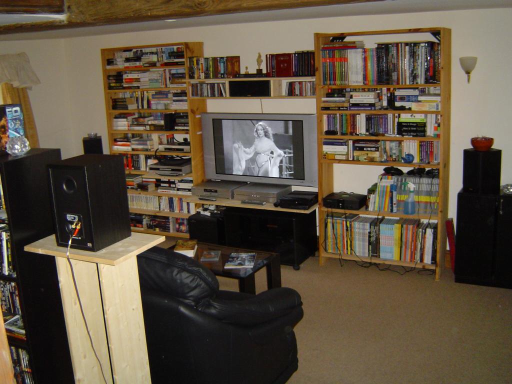 et surtout en positionnant directement l'enceinte latérale gauche sur la bibliothèque légèrement déplacée.