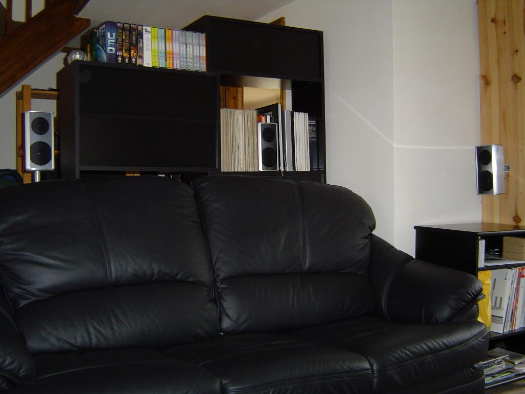 Si l'enceinte de droite est bien placée, celle de gauche est malheureusement dans un vrai angle mort à cause de la bibliothèque.