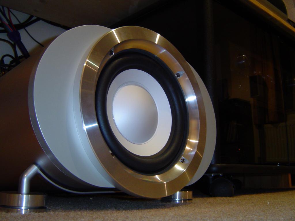 - Le caisson actif Submariner, taillé dans un profilé alu, possède un woofer bass reflex en alu, diamètre 178 mm, puissance 150W, fréquence 25 à 200 Hz.