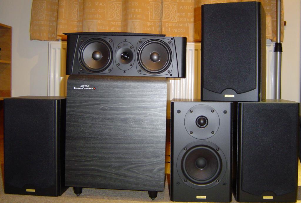 et un caisson Jamo SW410E (woofer 254mm, bass reflex, 100W, 35-150 Hz).
